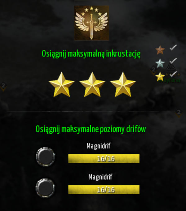 - Osiągnięcie maksymalnego poziomu inkrustacji wymaga 12 150 odłamków,